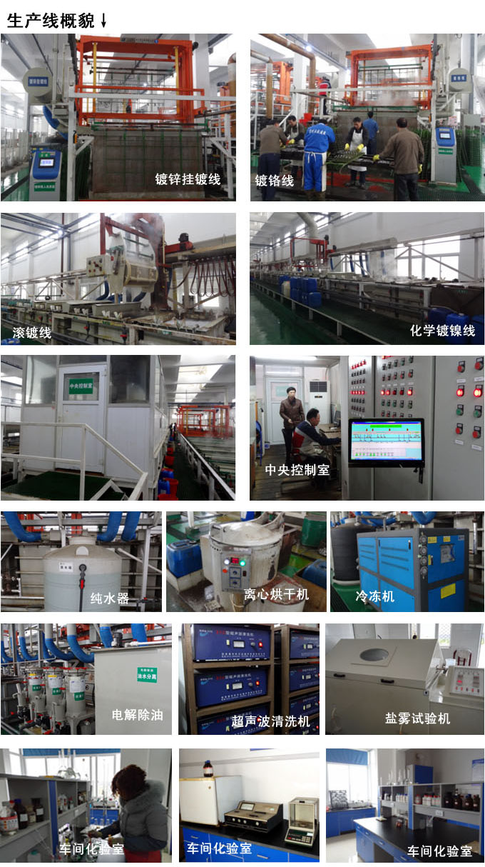 目前主要為金屬制品企業(yè)提供表面處理和服務(wù),特別是汽車(chē)零部件的表面處理,主要鍍種有:多層鎳、化學(xué)鎳、黑鉻、彩鋅、藍(lán)鋅、黑鋅、軍綠、三價(jià)鉻彩鋅、三價(jià)鉻藍(lán)鋅、鋁氧化等。