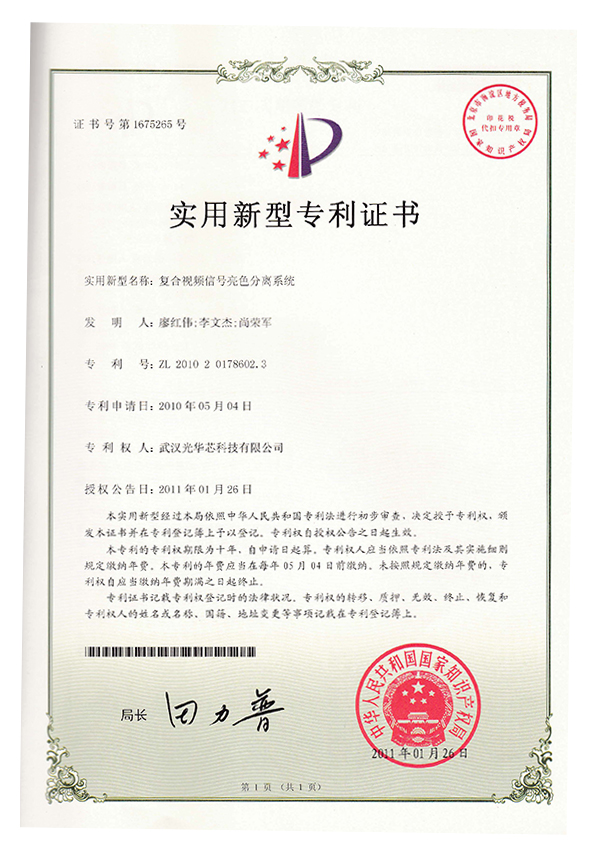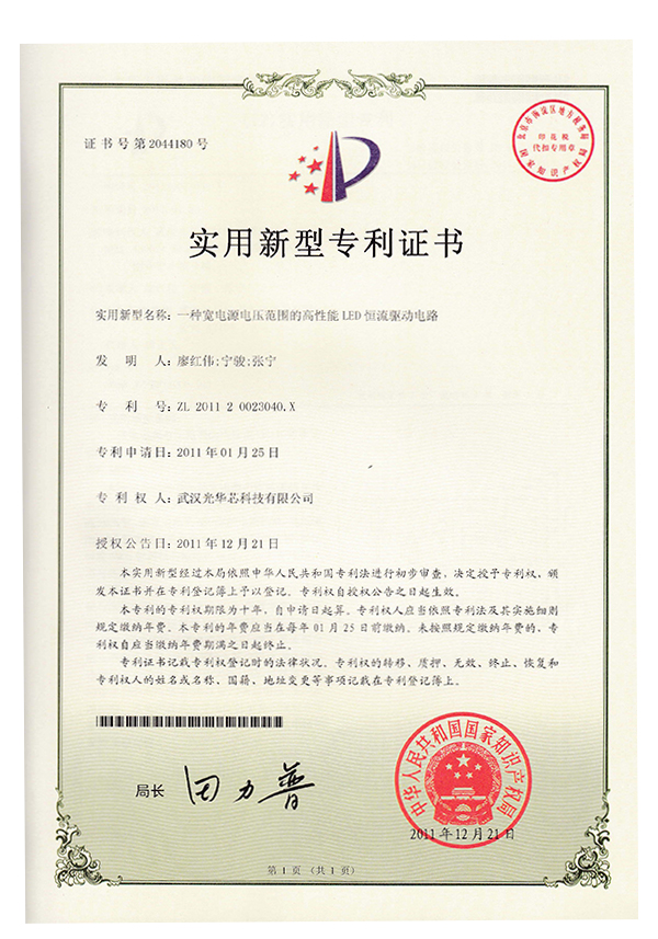 實用新型專利證書