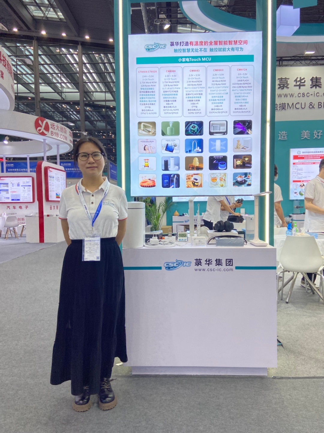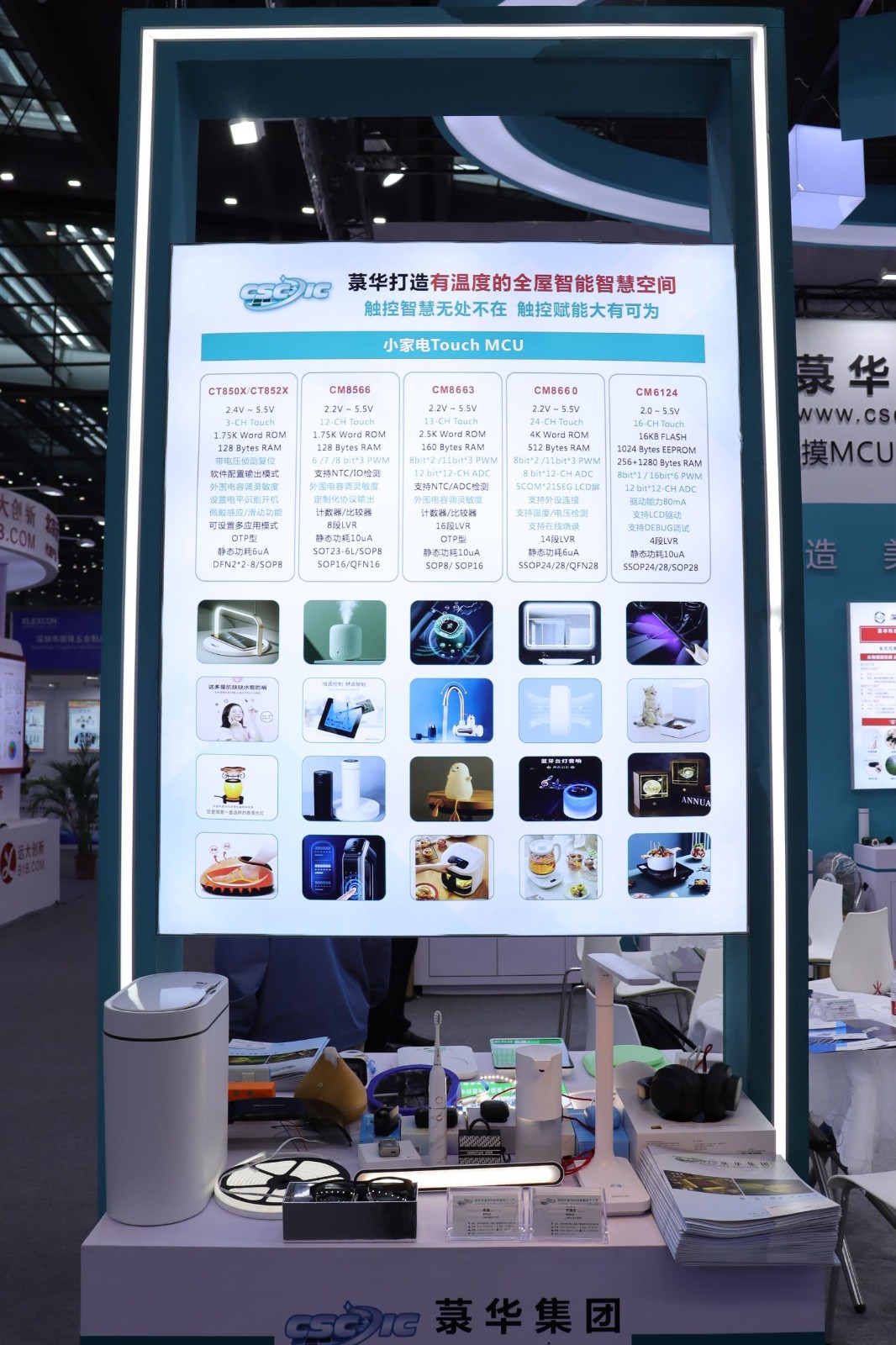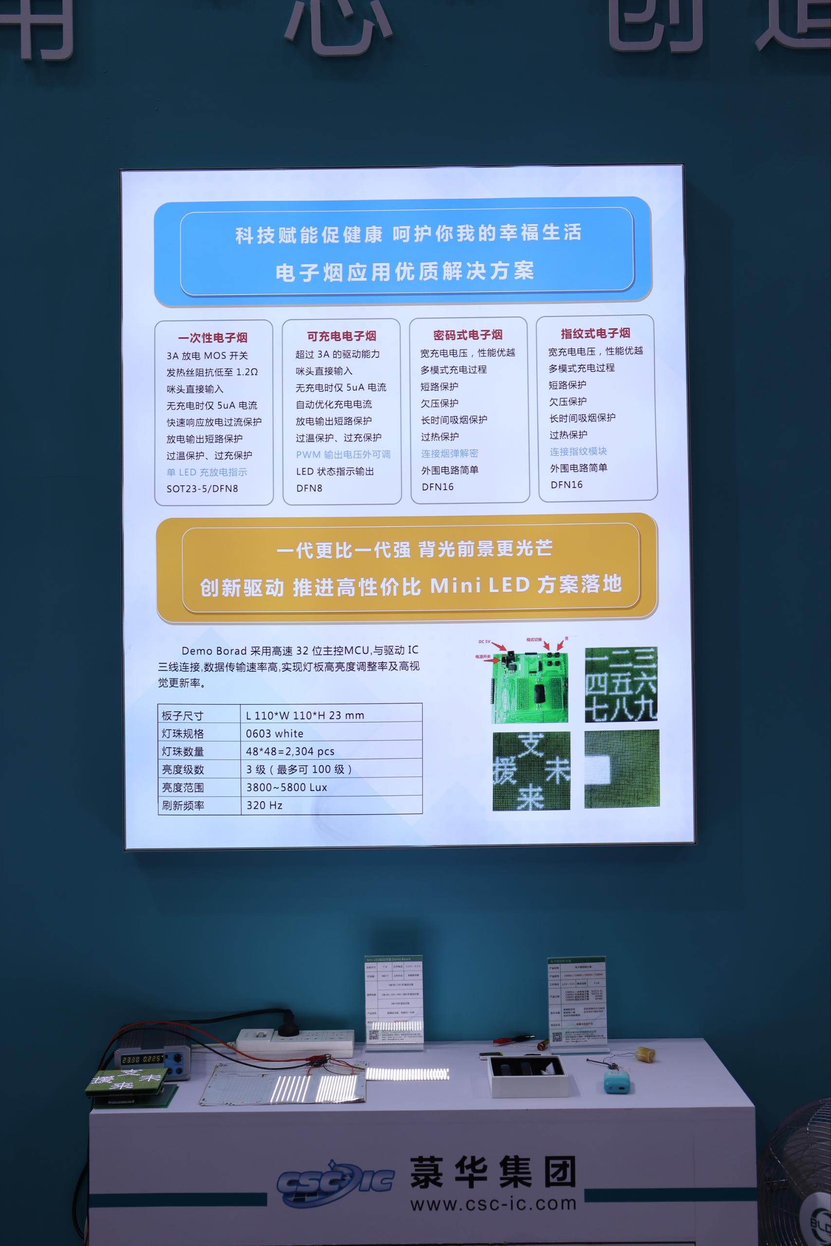 本次展會中,菉華集團展示了5大系列的產(chǎn)品,小家電Touch MCU、音頻芯片、Mini LED與電子煙、BLDC、消費類醫(yī)療器械方案,其中主推產(chǎn)品是電容式觸控芯片和音頻系列芯片。觸控系列芯片采用COMS工藝制造,內(nèi)建穩(wěn)壓和去抖電路,高可靠性、高靈敏、超低功耗,寬工作電壓,專為取代光感和傳統(tǒng)按鍵開關(guān)而設(shè)計,產(chǎn)品應(yīng)用有空氣炸鍋、加濕器、凈化器、霧化器、車載支架、座位調(diào)節(jié)開關(guān)、空調(diào)/房車控制板、報警器、TWS耳機、手環(huán)、手表、各種智能燈具、智能門鎖、智能眼鏡、眼部按摩儀、電子秤等等。音頻系列芯片產(chǎn)品,包括USB數(shù)字音頻SoC、CODEC、ADC、DAC。廣泛應(yīng)用于PC及周邊外置設(shè)備、安防、車載、商業(yè)、影像電機、電子數(shù)碼等領(lǐng)域。作為國內(nèi)首批專業(yè)從事音頻芯片的設(shè)計企業(yè),在音頻領(lǐng)域十余年的研發(fā)實力和市場耕耘已獲得眾多國內(nèi)外客戶的認可。