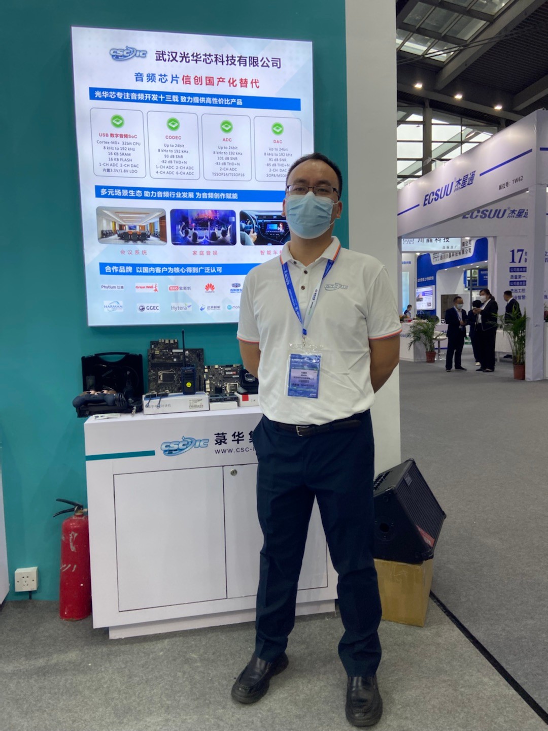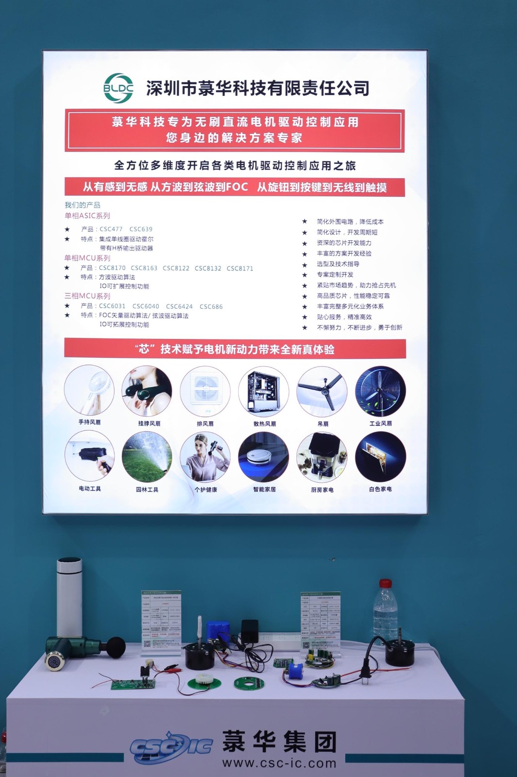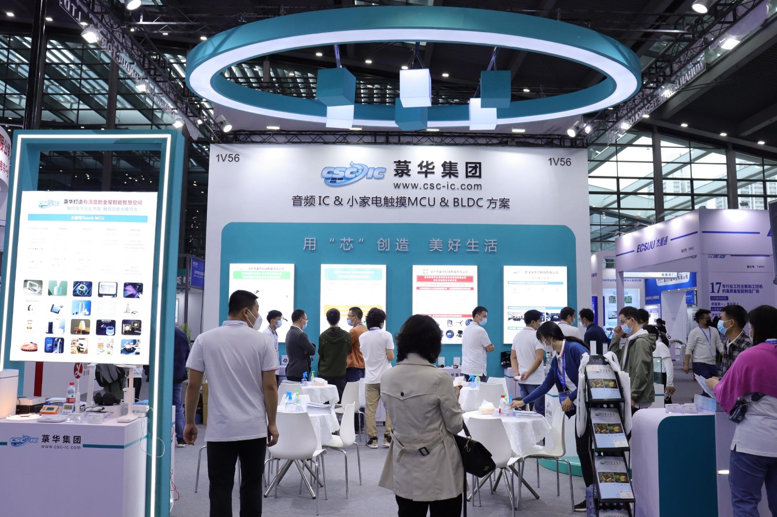 本次展會中,菉華集團展示了5大系列的產(chǎn)品,小家電Touch MCU、音頻芯片、Mini LED與電子煙、BLDC、消費類醫(yī)療器械方案,其中主推產(chǎn)品是電容式觸控芯片和音頻系列芯片。觸控系列芯片采用COMS工藝制造,內(nèi)建穩(wěn)壓和去抖電路,高可靠性、高靈敏、超低功耗,寬工作電壓,專為取代光感和傳統(tǒng)按鍵開關(guān)而設(shè)計,產(chǎn)品應(yīng)用有空氣炸鍋、加濕器、凈化器、霧化器、車載支架、座位調(diào)節(jié)開關(guān)、空調(diào)/房車控制板、報警器、TWS耳機、手環(huán)、手表、各種智能燈具、智能門鎖、智能眼鏡、眼部按摩儀、電子秤等等。音頻系列芯片產(chǎn)品,包括USB數(shù)字音頻SoC、CODEC、ADC、DAC。廣泛應(yīng)用于PC及周邊外置設(shè)備、安防、車載、商業(yè)、影像電機、電子數(shù)碼等領(lǐng)域。作為國內(nèi)首批專業(yè)從事音頻芯片的設(shè)計企業(yè),在音頻領(lǐng)域十余年的研發(fā)實力和市場耕耘已獲得眾多國內(nèi)外客戶的認可。