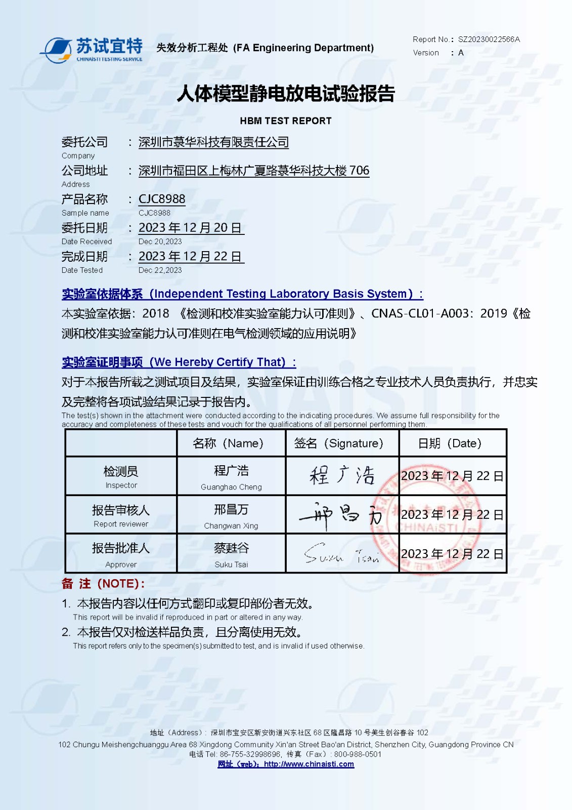 CJC8988_ESD測試報告